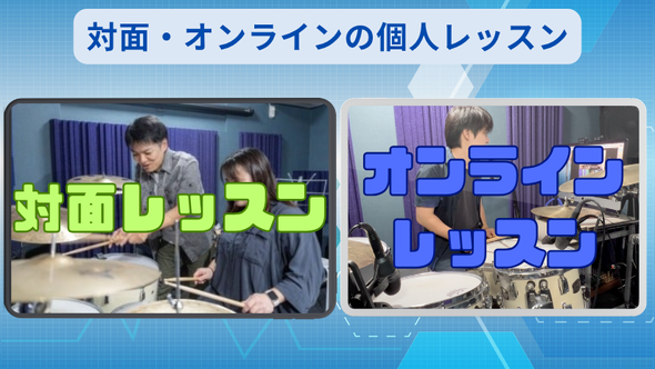 当ドラム教室では対面はもちろん、遠方の方でもオンラインレッスンが受講でき、その場で質問可能です。