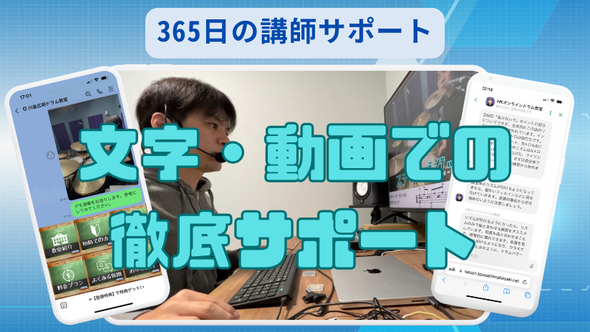 当ドラム教室ではレッスンスタジオをもっているため、対面レッスンを行うレッスン会場費や講師の交通費などがかからないためです。またオンライン講座は事前にレッスン動画を撮影しておくことで、レッスンのための経費を削減しており、料金を安くすることに成功しました。講師の通勤などの移動時間を削ることにより、生徒さんのサポートに徹することが可能となります。